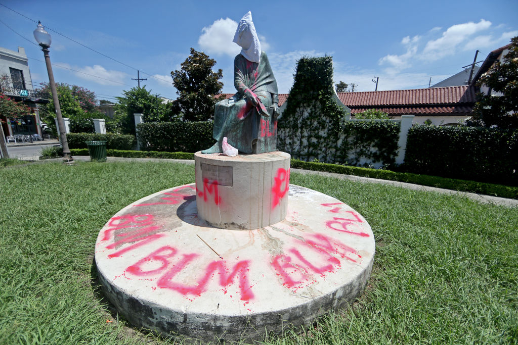 ![]() In the Western world, the past has become the target of an ideological crusade. Many of its historic monuments and symbols are being vandalised, defaced or destroyed altogether. Pictured: The vandalised statue of educator Sophie Bell Wright, whose father served in the Confederate Army, on July 10, 2020 in New Orleans, Louisiana. (Photo by Michael DeMocker/Getty Images) |
