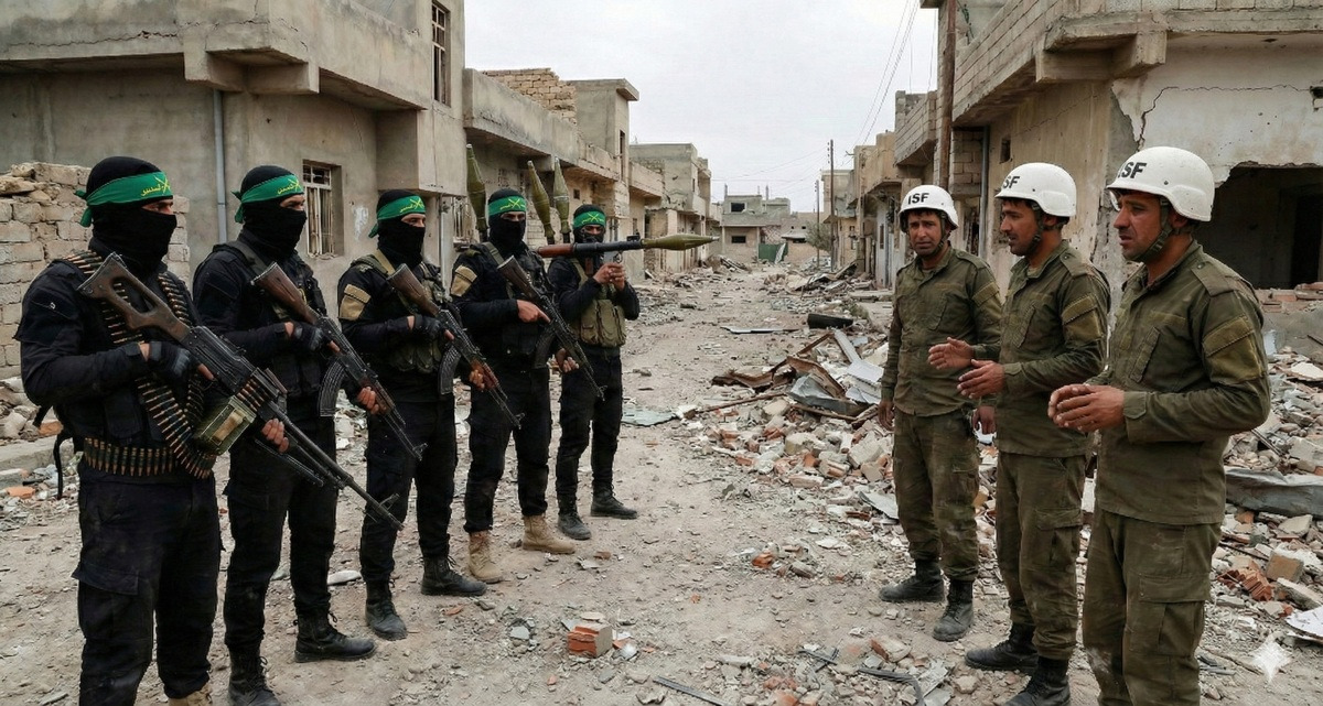 Hamas claims that an International Stabilization Force (ISF) in Gaza that tries to implement disarmament of the terrorist organisation would make it a combatant acting on behalf of Israel, a declaration that all but guarantees the ISF would find itself involved in a violent conflict with the Islamist group. Pictured: Hamas terrorists in Jabalia refugee camp, in the Gaza Strip, on December 1, 2025. (Photo by Omar Al-Qataa/AFP via Getty Images)